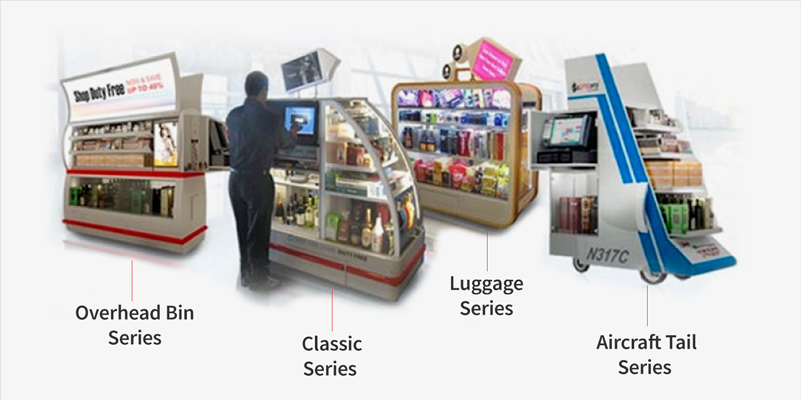 These mobile, motorized retail shelving displays carry products to remote locations — stimulating impulse purchases that may otherwise have been lost. Often used at airports, these units are especially appealing to Duty Free merchandisers because they can be parked right at the gate, offering convenient shopping (and savings) to passengers awaiting their flights.